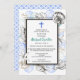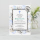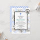 En samling snigelhus omger en enkel dubbel ram på denna dopinbjudan. Ett blått kors pryder toppen. Baksidan har ett havsmönster för att fullborda temat.