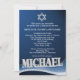 Stålstjärnan av David och blå vågformgivning med namn "Michael". Kontakta den här designern om du vill ha en anpassad namninbjudan i färg. Underbar för Pub Mitzvahs, Bat Mitzvahs, Studenten och födelsedagar. Bold block namn över en våg av färg.