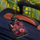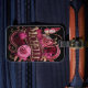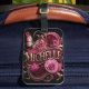 Nära på den dekorativa namnskylten som läser Michelle i guldbrev på maronbakgrunden med rosor, fjäril och hjärta.