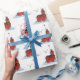 Holland Michigan "Big Red"-fyr med vatten stänk och fiskmås på vit bakgrund. Bakgrunden till färg kan ändras.