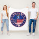 Michigans märke med flagga Michigan och flagga i USA färg, avrundat. Michigans emblem. Michigans försegling. Samling i USA Stater.