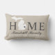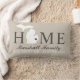En personlig Michigan lumbalpåse i varmt beige med den vita statens silhuett med ett litet hjärta som markerar din hemstad. Mjuk svart Hem-text med anpassningsbar script familjenamn och stad skapar en jordnära monogram på en beige bakgrund, med koordinerade ränder på baksidan. Hjärtat kan flyttas över din specifika Michigan-stad. En meningsfull gåva för Michigan-familjer.