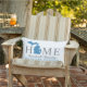 En personlig kudde i Michigan-stil med statens siluett i blått och ett litet hjärta som markerar din hemstad. Grå text och familjenamnet i skrivstil skapar en mjuk och diskret monogram på en ren vit bakgrund, med koordinerade blå och vita ränder på baksidan. Hjärtat kan flyttas för att markera din Michigan-stad. En raffinerad present för Michigan-familjer.