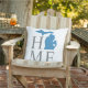En Michigan Hem utomhus kudde med statens siluett i blått med ett litet hjärta som markerar din hemstad. Grå Hem-text på en ren vit bakgrund skapar en enkel, modern statlig stolthet design, med koordinerande blå och vita ränder på baksidan. Hjärtat kan flyttas för att markera din specifika Michigan-stad. Ett bra tillbehör för uteplatser, verandor eller däckmöbler.