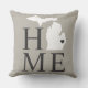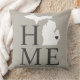 En Michigan Hem kastkudde på en varm grå bakgrund med den vita statens silhuett med ett litet hjärta som markerar din hemstad. Mjuk svart Hem-textning skapar en sofistikerad, tonal statlig stolthetsdesign, med koordinerade ränder på baksidan. Hjärtat kan flyttas över din specifika Michigan-stad. En raffinerad accent för vardagsrum eller sovrum.