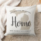 En personlig Michigan Hem kastkudde på vit bakgrund med siluett av staten i beige med en script Hem-overlägg. Anpassningsbart familjenamn och stad skapar ett meningsfullt monogram i en ljus, luftig palett, med koordinerade ränder på baksidan. En fräsch, ren present för Michigan-familjer som älskar ljust, neutralt statsstolthet-dekor.