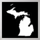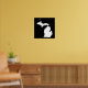 Formen för Michigan i svart och vitt. Ändra bakgrundsmeddelandet färg eller lägg till ett anpassningsbar-källtextmeddelande.