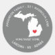 Unikt tillstånd för MICHIGAN New home address label-etikett på en grått-bakgrund med rött hjärta och flygplan.