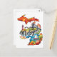 Michigan USA State Shaped Vintage Watercolor Vykort