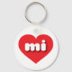 Den här nyckelkedjan har ett pulserande rött hjärta som innehåller den feta, vita, rundade nedre fodral brev mi, en lekfull förkortning för Michigan, det Underbara Sjöar.