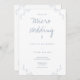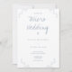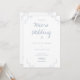 En bröllopsinbjudan till en mikro bröllop. Den här inbjudan är skriven i blått på vitt och innehåller detaljer om löv. Lägg bara till din information, lägg till inbjudan i din kundvagn och njut av ditt lilla och intima bröllop.