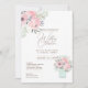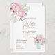 Modern bröllopsinbjudan med vacker grafik i blommigt och textmall på båda sidor för att lägga till alla dina uppgifter, inklusive ceremoni i bröllop, mottagning, osa, presentregister med mera. Redigera qr-skanningskoden med din egen URL för bröllop-webbplats eller ta bort den om den inte behövs.