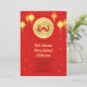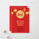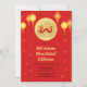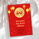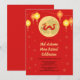 Elegant Mid-Autumn Måne-festivalkort. Utformningen har en röd drake, ett ljust måne, charmeringslanternor och gyllene månkakor på en ljusröd bakgrund. Anpassa text, teckensnitt och färg. Finns även som digital nedladdning.