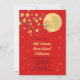 Elegant Mid-Autumn Måne-festivalkort. Utformningen har en skarp måne, charmig grenar och guldfärgad moonkaka på en ljusröd bakgrund. Anpassa text, teckensnitt och färg. Finns även som digital nedladdning.