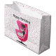 Den här presentpåsen är vit med söt rosa polka dots och två halvsekelskatter, en svart och en vit med diamantburk sitta i en rosa stol. Anpassa Grattis på födelsedagen-texten till mallen.