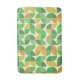 Denna badrumsmatt med moderna retro geometriska former i mintgrön, limegrön, orange och gul färg, är en snygg badrumsmatt för de som älskar minimalistiska moderna designs