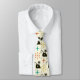 Detta är en söt slips med svart atomkattsmönster med mid century retro stjärnexplosioner i rosa, orange och turkos på ljus krämfärgad bakgrund