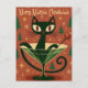 Mid Century Black Cat Merry Martini Christmas Vykort