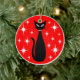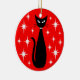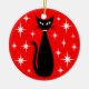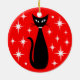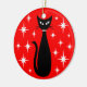 Mid Century Black Cat with White Stars on Red Julgransprydnad Keramik