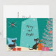 Atomkatter är en del av Mid-Century Modern-design och dessa katter är på julhumör! Handritat med retrodesign och färger, kommer detta kort att glädja MCM-fans i din familj.