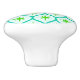 Add a vintage touch to your furniture with this ceramic knob featuring with this ceramic knob featuring mid century modern lime green atomic starbursts pattern on teal ovals ogee shapes.