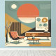 Mid Century Interior Design Sunrise Livingroom Canvastryck