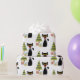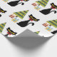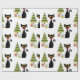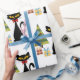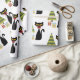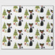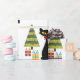 Färgfull illustration av abstrakten Mid Century stil med svart dekoration av katt, Julgran och julklappar