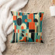 5 star quality pillow with Mid-Century Modern Abstract design including geometric forms, lines, and eye-catching colors of orange, teal, turquoise, black and light yellow. Perfect for giving your room that pop of mid-century vibe.
