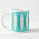 Den moderna Argyle Jumbo Mugg i Mid Century har en pulserande, turkotisk bakgrund och en mönster av mod, genomskinliga tealdiamanter som täcker större, vintage krämdiamanter med guld färgad, rymdåldersspräcken. Detta minimalistiska inspirerade, dekonstruerade argument är ett förenklat bakslag av den mer än livskraftiga atomtid som dominerade 1950- och 1960-talets dekorerande landskap. Den här kitschydesignen påminner om allt från Handflatan Vår's tarmskyltar till de tv-fack du använde i din mormors hus.