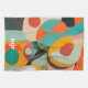 En modern målning i mitten av århundradet i olika geometriska former i rött, teal, orange, svart och grönt med fet vitt monogram eller namn.