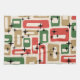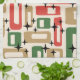 A festive mid-century composition featuring red, gold, and green rectangles scattered across a soft beige background, punctuated by crisp black starbursts. The geometric layout evokes vintage holiday wrapping paper and atomic-era ornamentation, blending bold shapes with twinkling accents. The palette channels cozy retro cheer, while the rhythmic repetition of forms adds a playful, celebratory energy—perfect for Christmas décor with nostalgic flair and graphic charm.