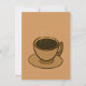 Tidigt, regniga dagar, en kopp kaffe i en mysigt café. "Kaffet, tack!" har en stor design som har en enda kopp av ångkaffe på en mysigt brunt bakgrund i en modern lekmogen tro stil.