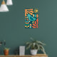 Öka ditt utrymme med den här moderna, inspirerade fågeln och Löven Poster! Den här teckningen har en handritad originalutformning och visar en söt fågel omgiven av löv, växter, sol och abstrakt. Den djärva paletten färg med teal, orange och gult tillför värme och charm och skapar den en perfekt påstående biet för vilket rum som helst. Oavsett om du är en fläkt av vintagens estetik eller helt enkelt kärlek naturinspirerad dekoration, ger den här pulserande poster en gnutta glädje och nostalgi till ditt hem.