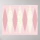Den moderna Rosan Argyle Poster i mitten av rosan Första Dam och mönster av mod, genomskinliga, diamanter som täcker större, vintage krämdiamanter med guld, utrymmeskräpor. Detta minimalistiska inspirerade, dekonstruerade argument är ett förenklat bakslag av den mer än livskraftiga atomtid som dominerade 1950- och 1960-talets dekorerande landskap. Den här kitschydesignen påminner om allt från Handflatan Vår's bowlingskyltar till klassiska TV-program till de tv-fack du använde i din mormas hus.
