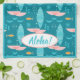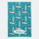 Mid Century Pink Catamaran - Blue Background Kökshandduk