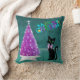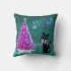 Mid Century Pink Tree Black Cat Teal Room Holiday Kudde