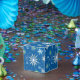 Mid-Century Snowflakes Galore On Blue Presentaskar