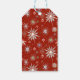 Mid-Century Snowflakes Galore On Red Presentetikett