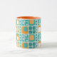 Mid Century Squares and Dots Mönster Teal, Orange Mugg