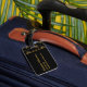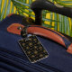 Den här personligen bagagetaggen har ett grafiskt mönster på vardera sidan som inspirerats av Mid Century Modern-designen med tunt rand och stjärnmotiv som består av cirklar i livliga återturer. All inslag av den här designen kan anpassas efter ditt val av färg.
