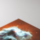 Mid-infraröd vy av skapelarpelarna. Tusentals stjärnor som finns i regionen försvinner, och till synes blir oändligt lagrar av gas och damm en central punkt. Damm är en viktig beståndsdel för stjärnbildning. Många stjärnor formar sig aktivt i dessa täta blå grått-pelare. När gas- och dammknop med tillräcklig massa i dessa regioner börjar de att kollapsa under sitt eget gravitationella attraktion, hetta upp sig långsamt och till slut bilda nya stjärnor. Stjärnorna i slutet av tjocka, dammiga pelare har nyligen urholkat det material som omger dem. De dyker upp i rött eftersom deras atmosfärer fortfarande omges av dammtäcken. De blå tonerna anger däremot stjärnor som är äldre och som har spillt större delen av sin gas och sitt damm. Information om halvinfrarött ljus anger täta områden med gas och stoft. Det röda området mot toppen, som bildar en delikat V-form, är där dammet är både diffust och svalare.
