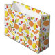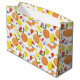 Fun ditzy pattern of fresh farmers’ market fruit in a Mid Century Modern style, with bold, vibrant colors and that distinctive grainy Risograph texture. Made of layers of red, yellow, and blue, with color misalignments and grunge effects.