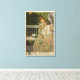 Vintage illustrationsdesign Sagor av den berömda barnboksillustratören Jessie Willcox Smith, Middag, med en mamma som matar sitt barn med en sked medan hon sitter på en bänk i trädgården.