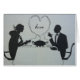svartvitt vintagetryck av en flicka och henne friare som har middagen för två
