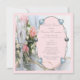 Eleganta och stilrena rosa och blå bröllopsdusch-inbjudningar med blanka blå hjärtan, vackra blekrosa och vita rosor och ett champagneglas med en brud och en brudgum, guldfärgade vigselringar och två söta vita duvor inuti. Dessa glamorösa inbjudningskort är dekorerade på båda sidor. Vackra, snygga, trendiga, moderna inbjudningskort med vintage-look. Perfekt för en vår-, sommar-, höst- eller vintershower. OBS: Alla produkter på Zazzle har platt tryckta bilder. Text, teckensnitt och teckensnittsfärg är alla anpassningsbara. Om du behöver hjälp med att anpassa din produkt, vänligen kontakta mig via min butik så hjälper jag dig gärna. Jag har matchande