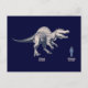 Ett spinosaurus mot människans storleka diagram med följande namn: "Middag Saurus" och "Dinner Sapiens". Blåkrämkonst, t-shirts, hookar, kort, presenter.