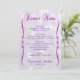 Den här elegant middagsmenyn i lavender bokeh light färg kan anpassas. Du kan ändra typsnittet och färgerna för större delen av texten och till och med färg i bakgrunden. Designad av Amelia Carrie och säljs endast via GlitterInvitations.com Obs! Detta är en grafisk återgivning eller grafik och innehåller inget rörigt glitter.