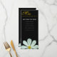 Middagsmenykort. vit daisy blomma i svart bakgrund.. för bröllop, möten, party, firande.