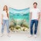 En vacker strandscen vid kusten med oceanen vågar och blå himmel med flytande vita moln skapat med MidJourney AI-konstappen med hjälp av en ursprunglig textfråga som jag angav.