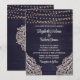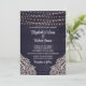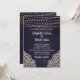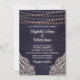 Tillsätt en touch av bohemisk charm till din bröllopsbrevpapper med denna Midnattblå Rustika Träbröllopsinbjudan. Den midnattblå trämiljön sätter scenen för en magisk fest, dekorerad med lysande strängljus som skapar en romantisk atmosfär. Ömtåliga vita blomster spetsmönster inramar inbjudans hörn och ger en elegant och feminin touch. Kombinationen av ett vintage script-teckensnitt och ett läsligt seriff-teckensnitt i vitt skapar en vacker kontrast mot den mörka bakgrunden och säkerställer att alla detaljer är lätta att läsa. Denna inbjudan är perfekt för par som söker ett unikt och förtrollande bröllopstema. Sätt tonen för din speciella dag med våra Rustika Elegans Bröllopsinb